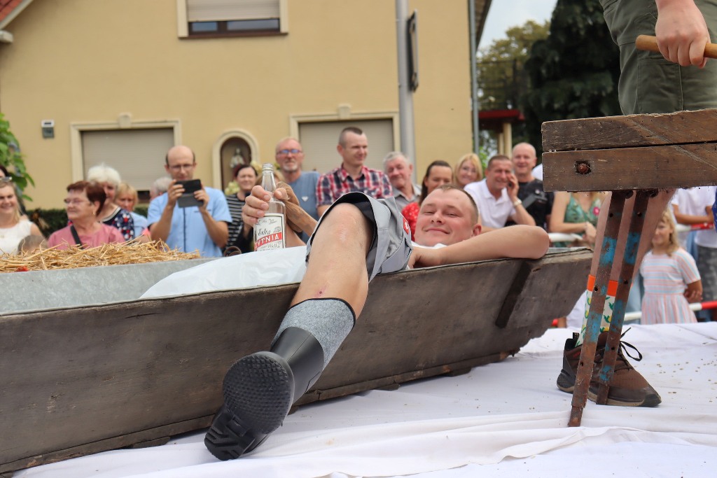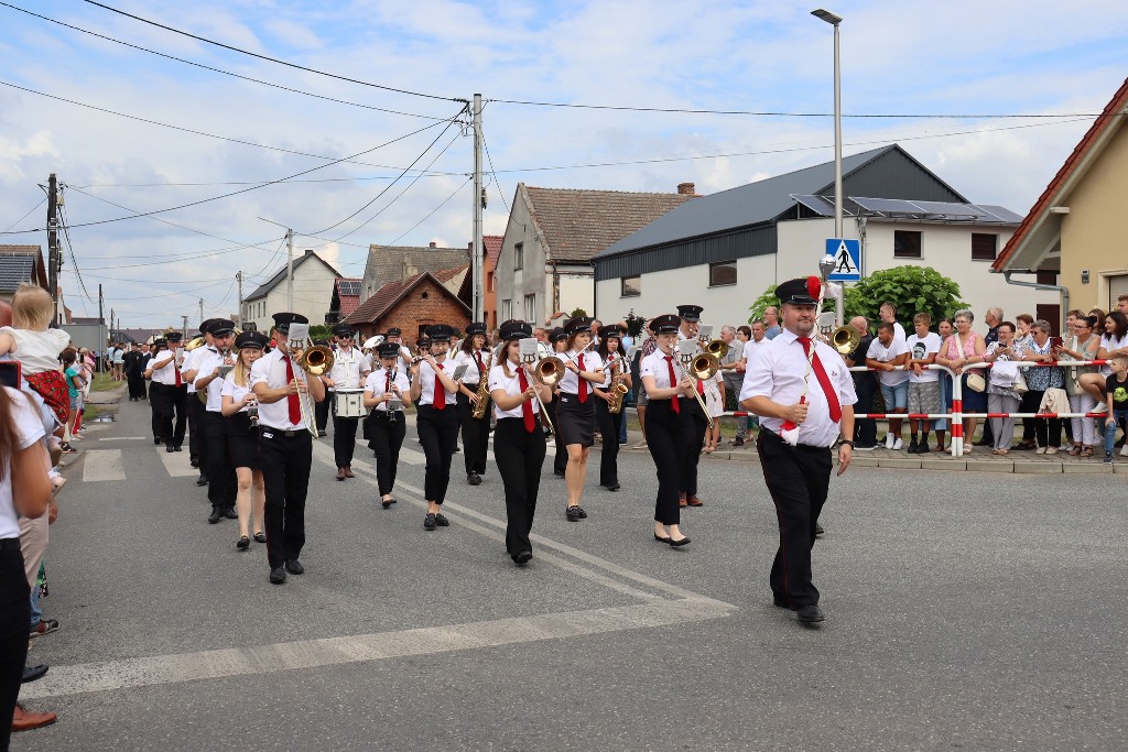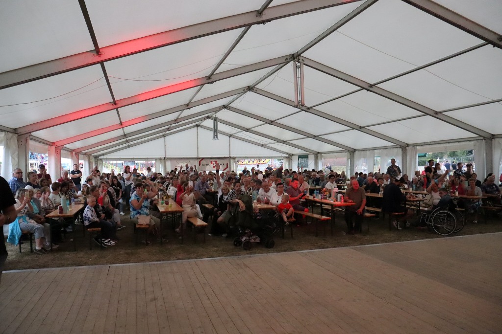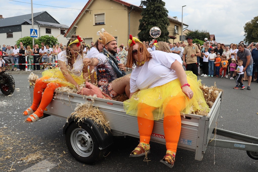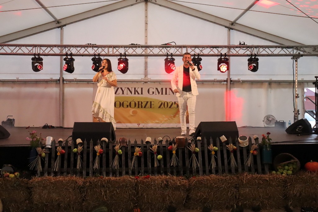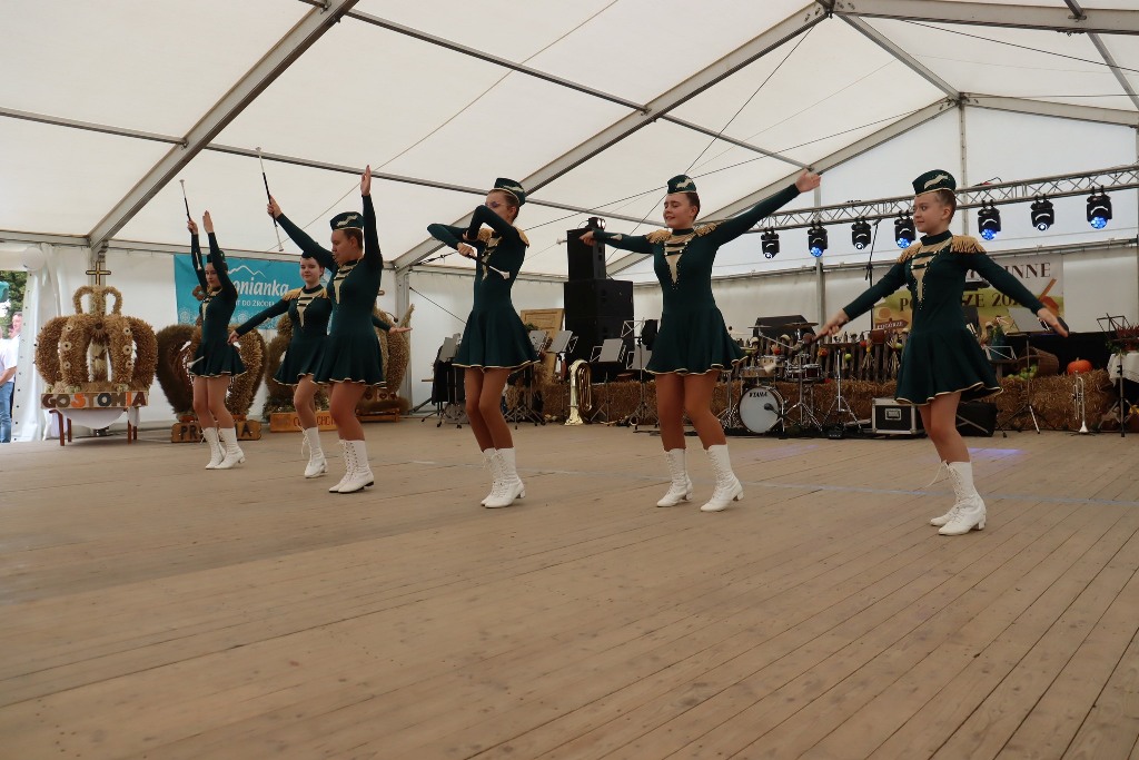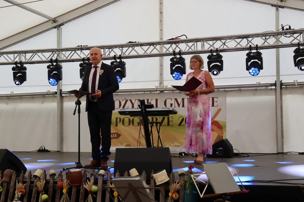 Pod namiotem zaprezentowały się przedszkolaki z Pogórza oraz pełne energii mażoretki Blanco. Na scenie życzenia rolnikom złożył burmistrz Edward Plicko wraz z zaproszonymi gośćmi. Odbyło się także tradycyjne przekazanie chleba dożynkowego – symbolu plonów i dostatku.