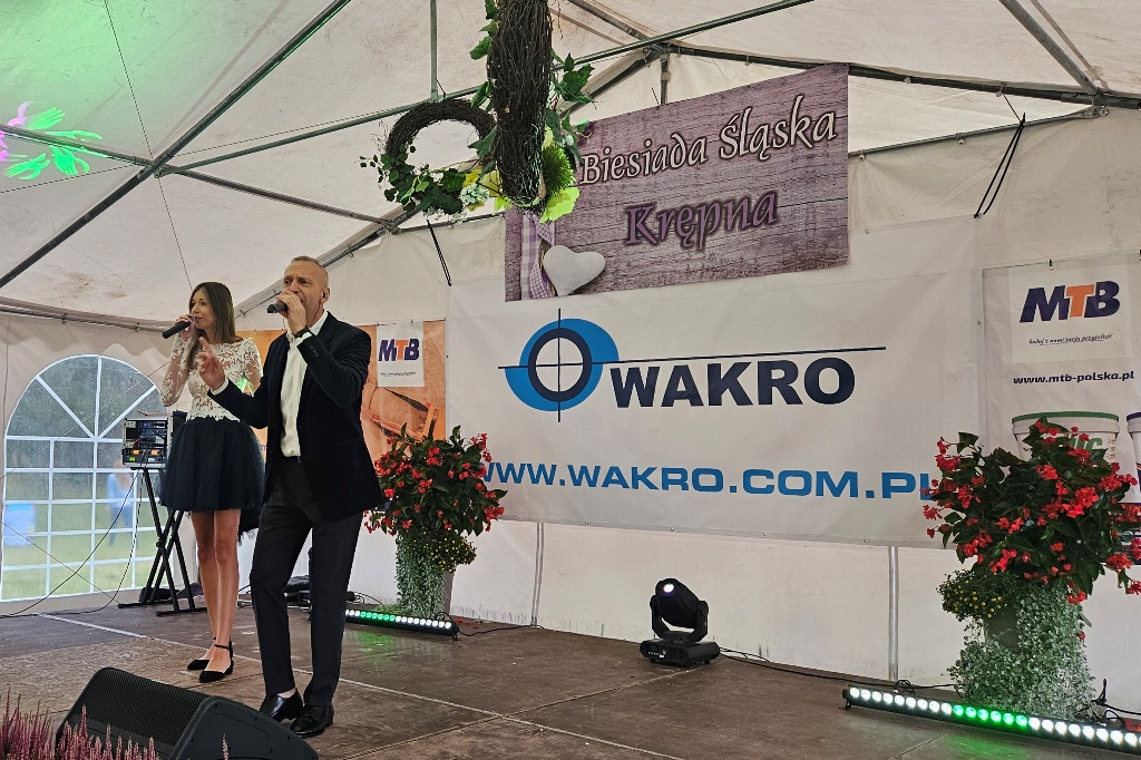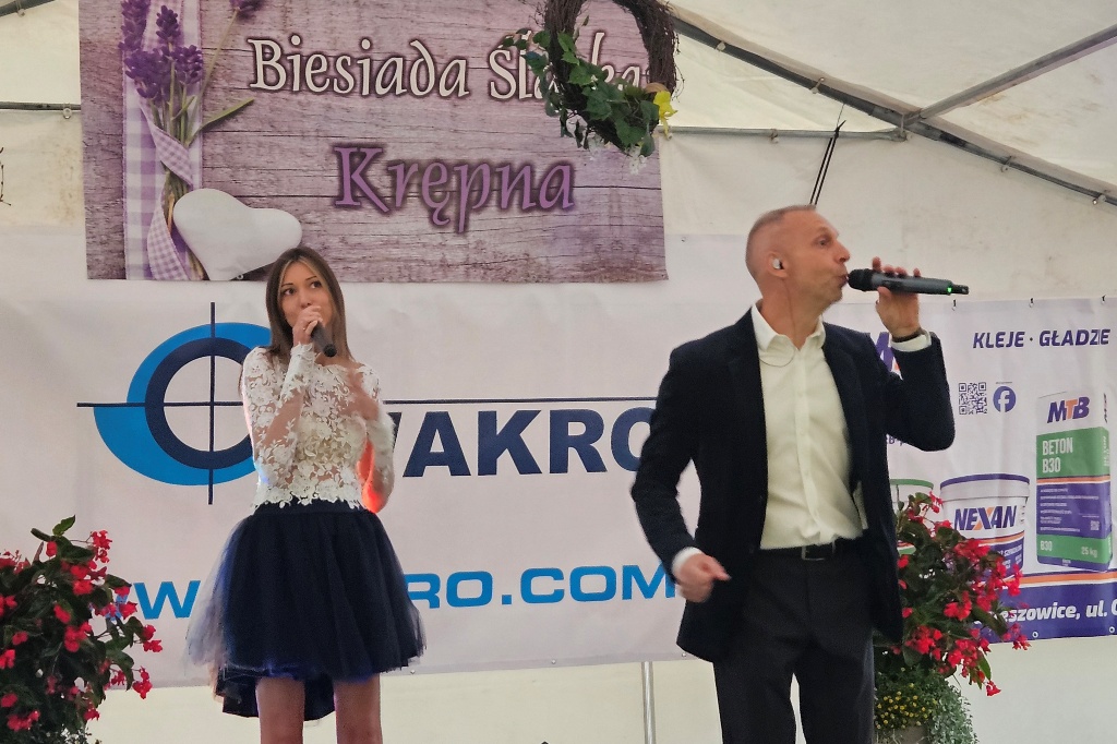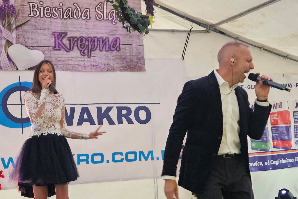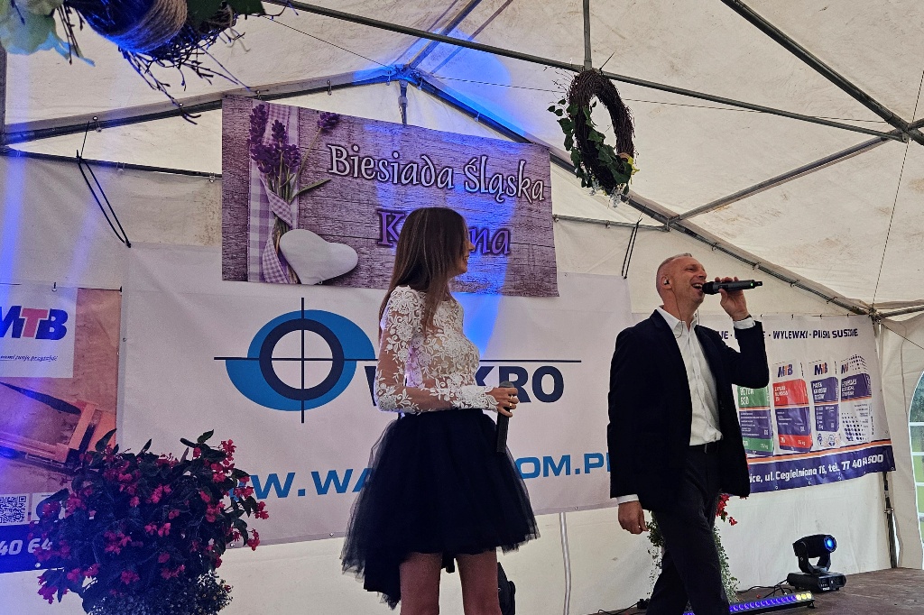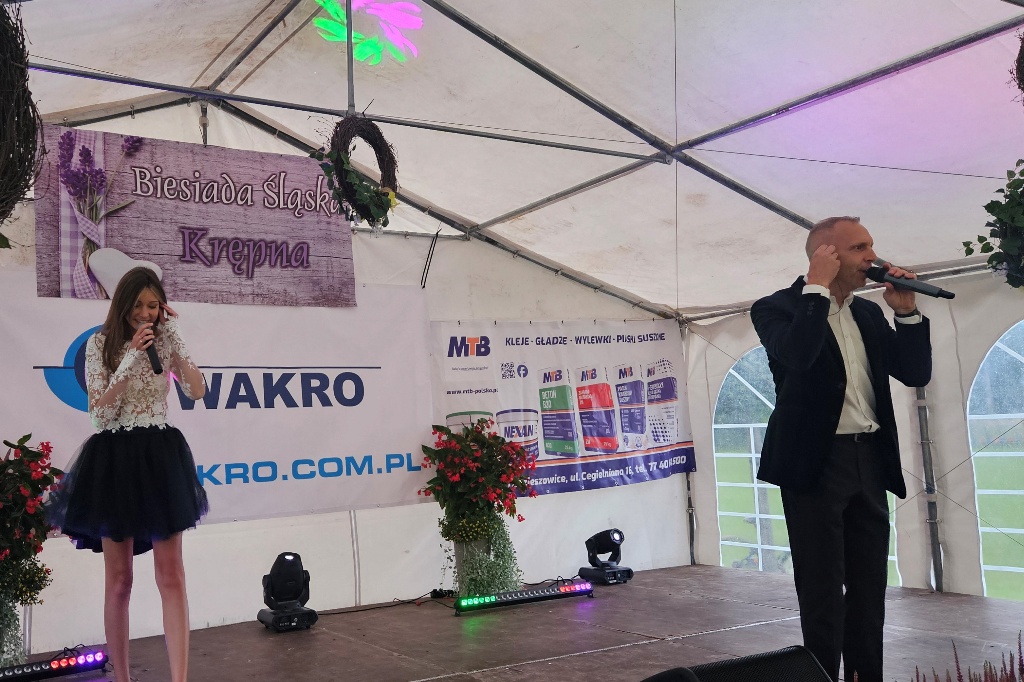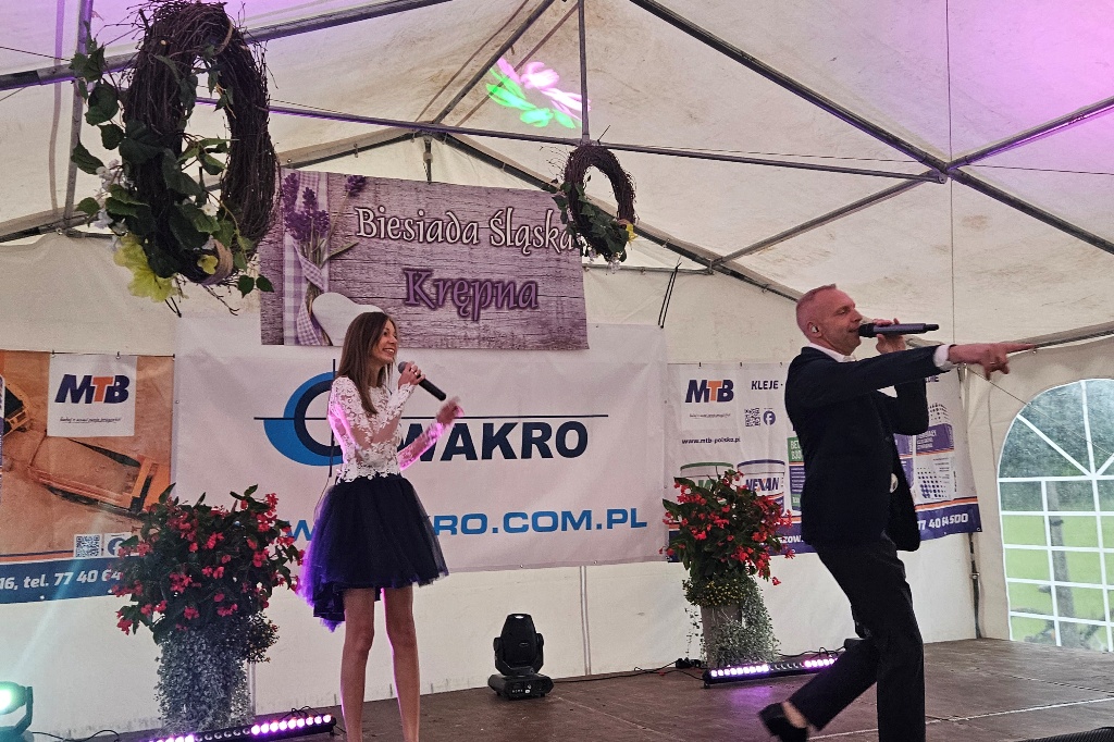 Biesiada Śląska w Krępnej. Pomomo niezbyt korzystnych warunków atmosferycznych zabawa była przednia. Organizatorzy zaprosili do udziału w wydarzeniu Monikę i Leszka Filec.