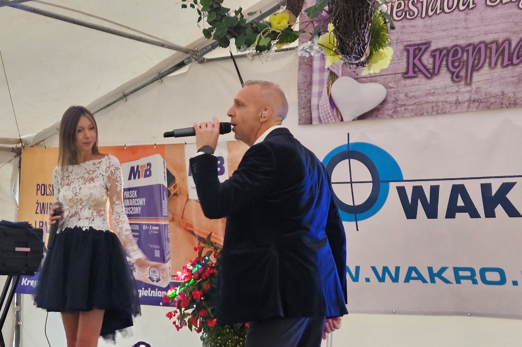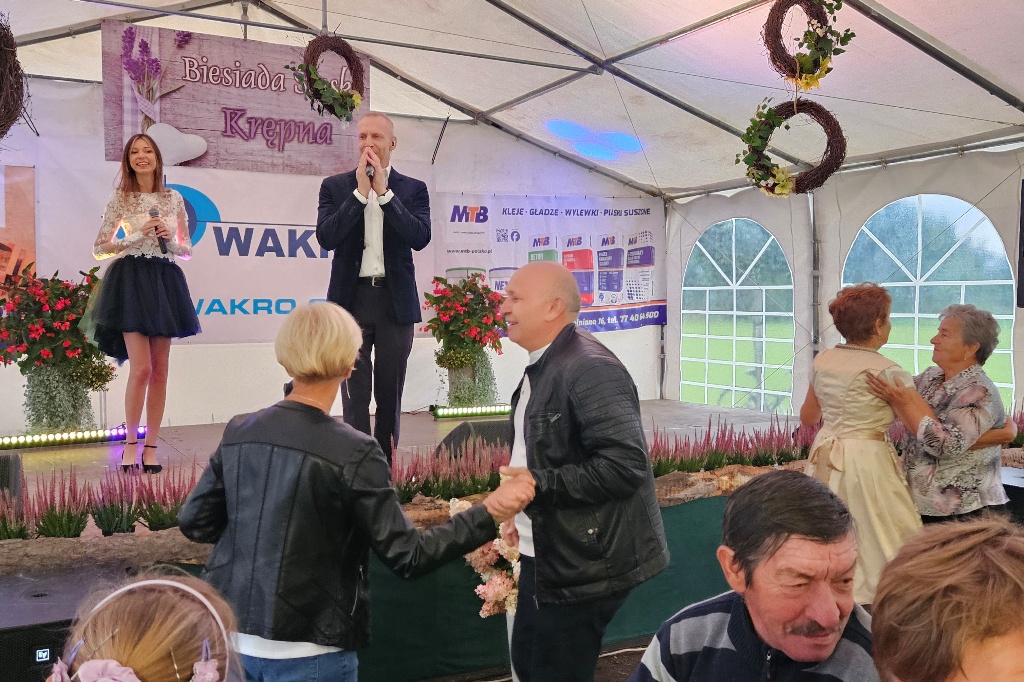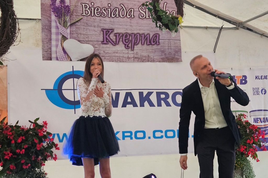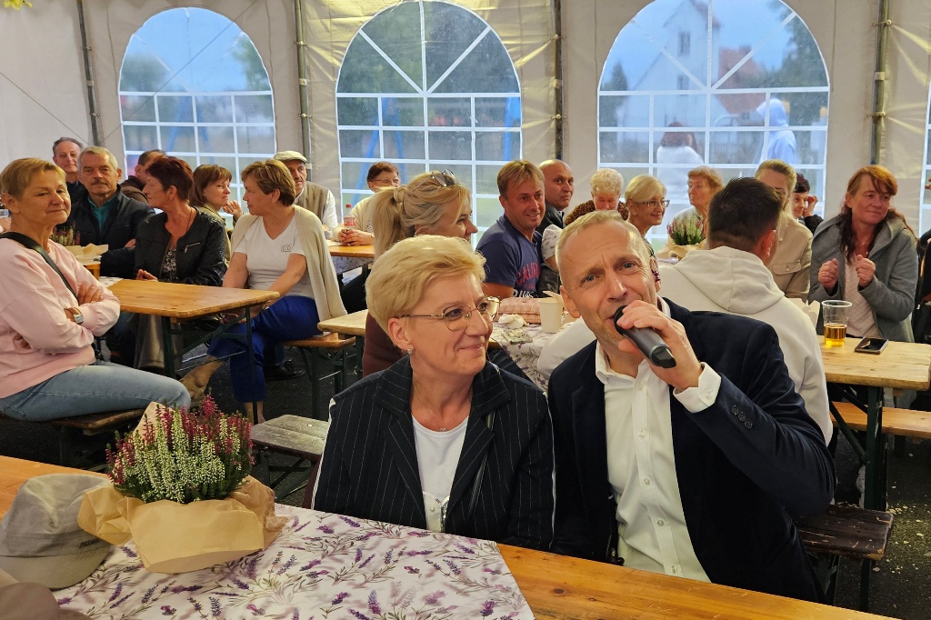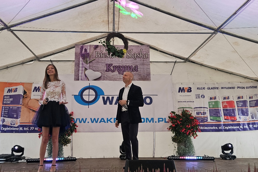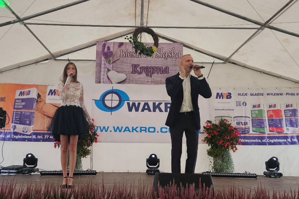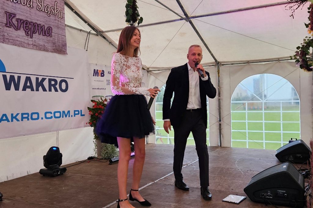 Biesiada Śląska w Krępnej. Pomomo niezbyt korzystnych warunków atmosferycznych zabawa była przednia. Organizatorzy zaprosili do udziału w wydarzeniu Monikę i Leszka Filec.