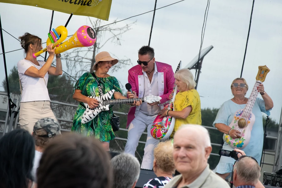 Na scenie pojawili się m.in. Robert i Brygida Łukowscy, zespół Smokey Band oraz grupa Weseli, która poprowadziła zabawę taneczną do późnych godzin nocnych. Nie zabrakło także atrakcji kulinarnych – grochówki z kuchni polowej, kołocza z radlińskich piekarni oraz stoisk gastronomicznych. Dla najmłodszych przygotowano gry i zabawy. W ramach dożynek oceniono również najpiękniej udekorowane posesje i najciekawsze pojazdy biorące udział w korowodzie.