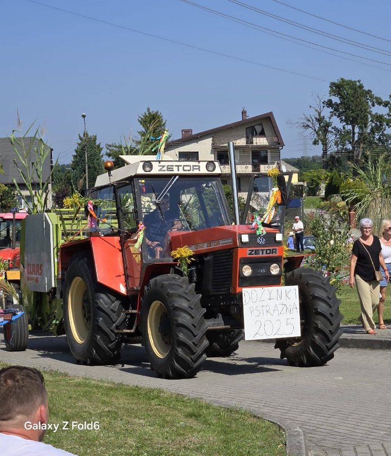 Dożynki 2025 w Pstrążnej - działo się! Przystrojone maszyny rolnicze przejechały ulicami w ramach dożynkowego korowodu, który był jedną z atrakcji odbywającego się tam święta plonów. Za zbiory dziękowano w trakcie mszy świętej, a następnie obfite dary ziemi świętowano w trakcie części rozrywkowej.