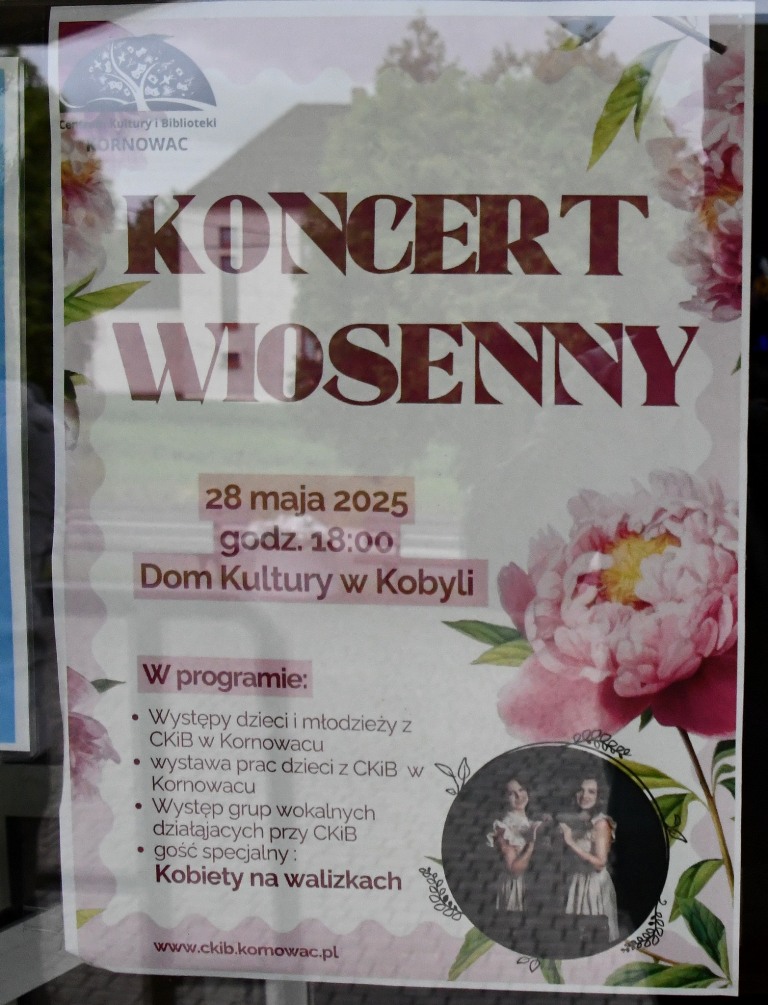W dniu dzisiejszym odbył się wyjątkowy "KONCERT WIOSENNY" w sali widowiskowej Domu Kultury w Kobyli. Wydarzenia było częścią obchodów Dnia Działacza Kultury. Na scenie zaprezentowali się lokalni wykonawcy oraz duet KOBIETY NA WALIZKACH, który po raz kolejny oczarował swoim programem publiczność.