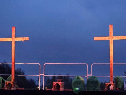 Dzisiejsze popołudnie spędzaliśmy w plenerze przygotowując scenę, nagłośnienie i oświetlenie na potrzeby realizacji MISTERIUM MEKI PAŃSKIEJ.