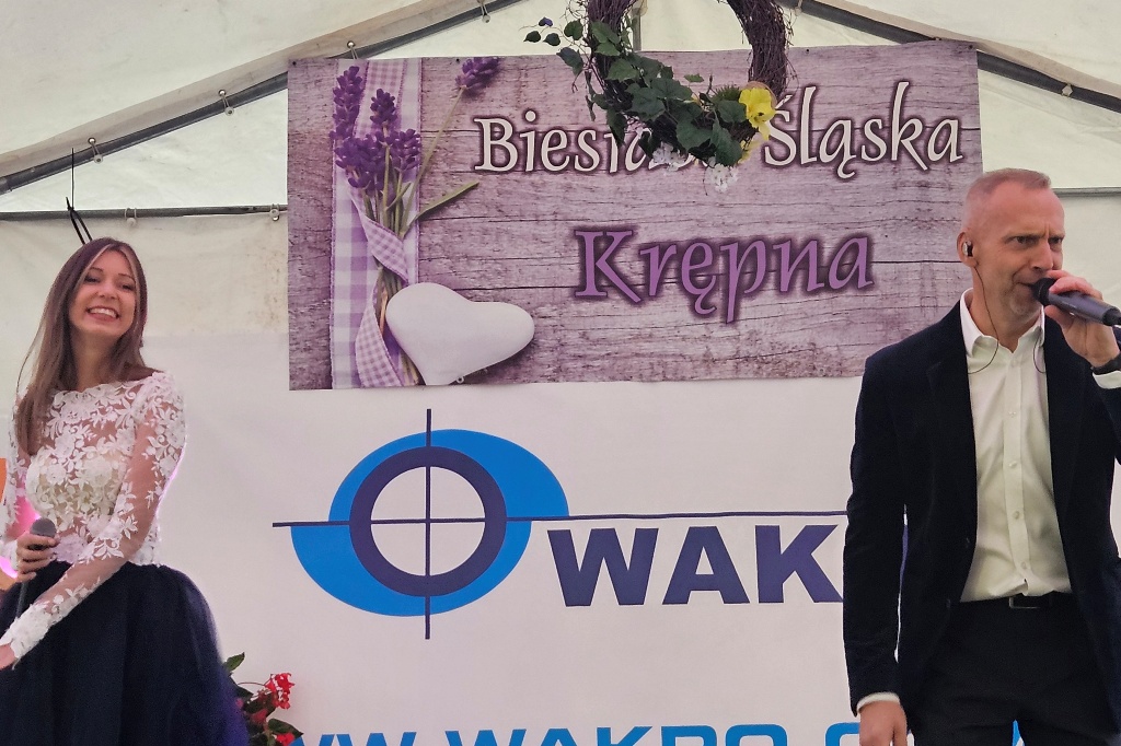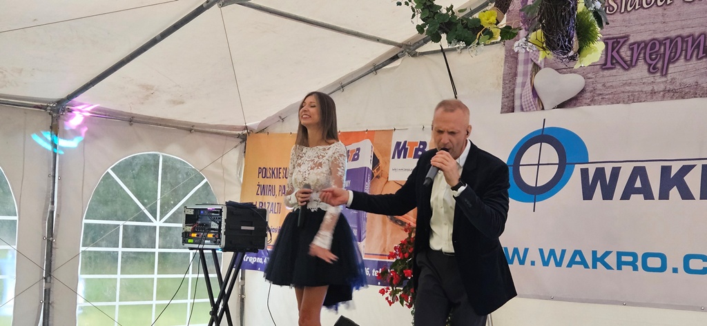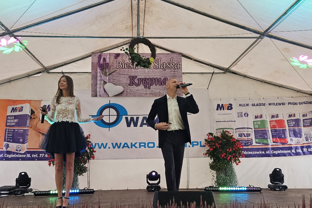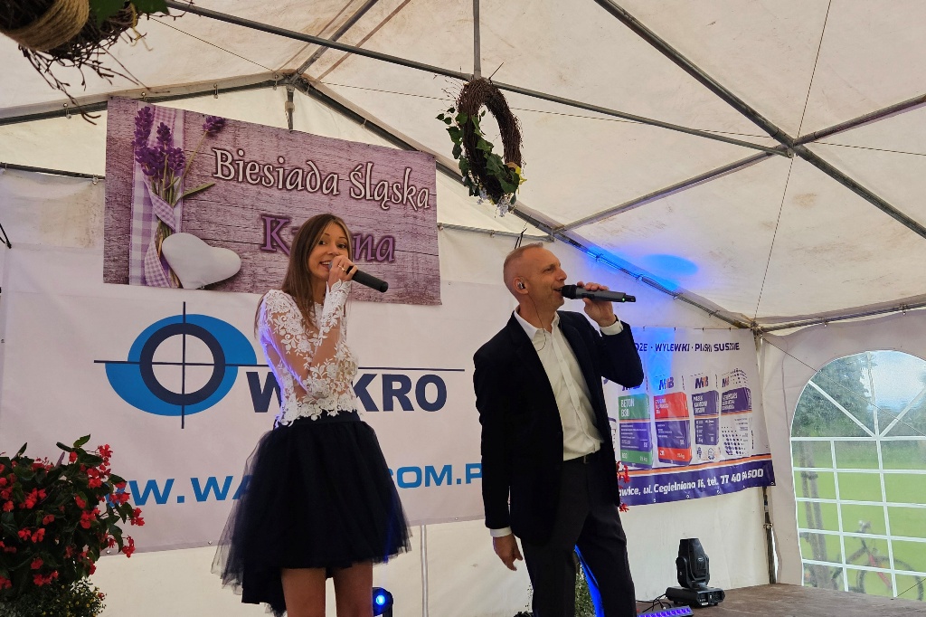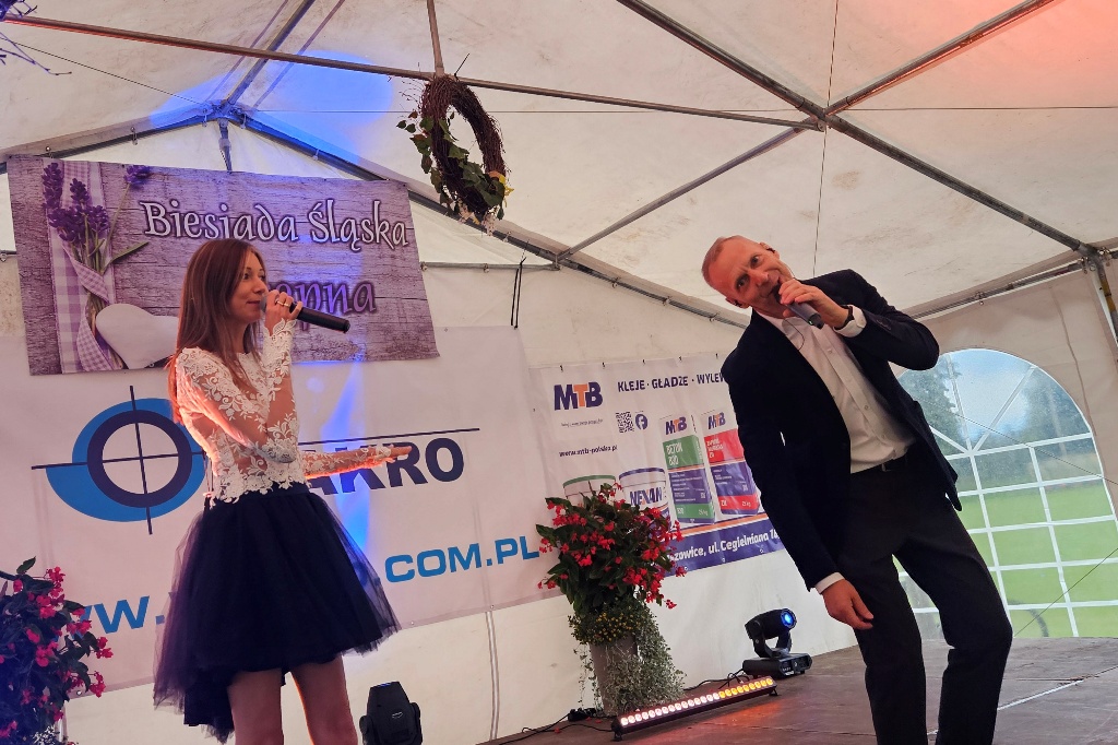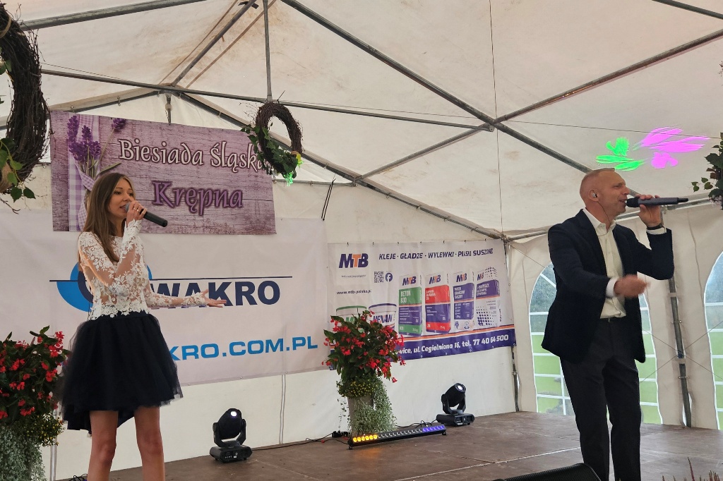 Biesiada Śląska w Krępnej. Pomomo niezbyt korzystnych warunków atmosferycznych zabawa była przednia. Organizatorzy zaprosili do udziału w wydarzeniu Monikę i Leszka Filec.